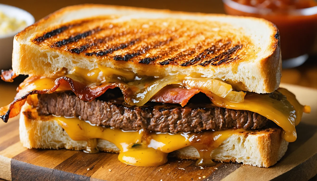 Smoked Turkey Patty Melts Sandwich Close-up | recipesbybrad.comCrispy Smoked Turkey Patty Melts with oozing cheese and golden bread, ready to eat.